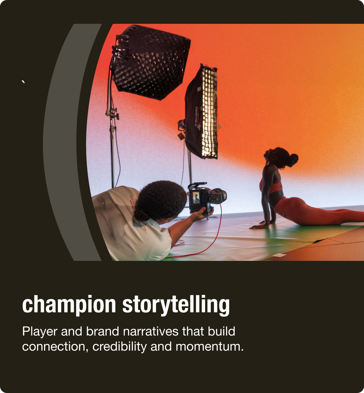 Brands don’t just need moments, they need momentum. (add)victory is at the intersection of sports, culture, and content. By combining our brand-building expertise with New England’s only in-house virtual production (VP) studio, (add)victory guides brands, teams, and athletes to create high-impact partnerships, scalable storytelling and measurable growth.